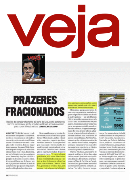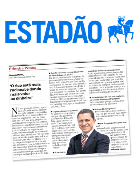 Pioneira no compartilhamento de aviões, helicópteros, embarcações, imóveis de luxo e carros esportivos, a Prime You anunciou o investimento de R$ 34 milhões ...