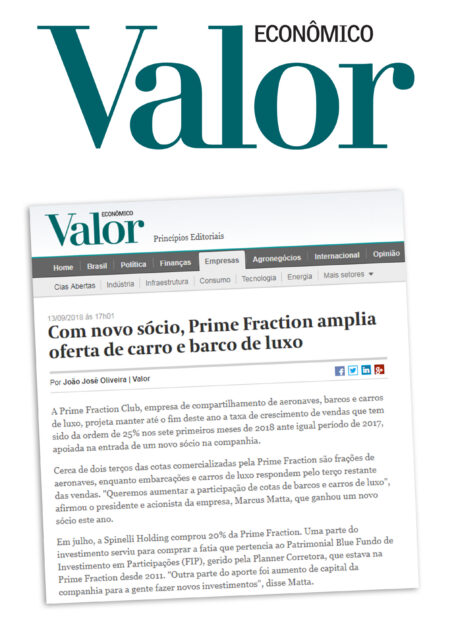 No programa Auto Esporte, as modalidades de compartilhamento de aviões e helicópteros são apresentadas por Marcus Matta, presidente do Prime Fraction Club.