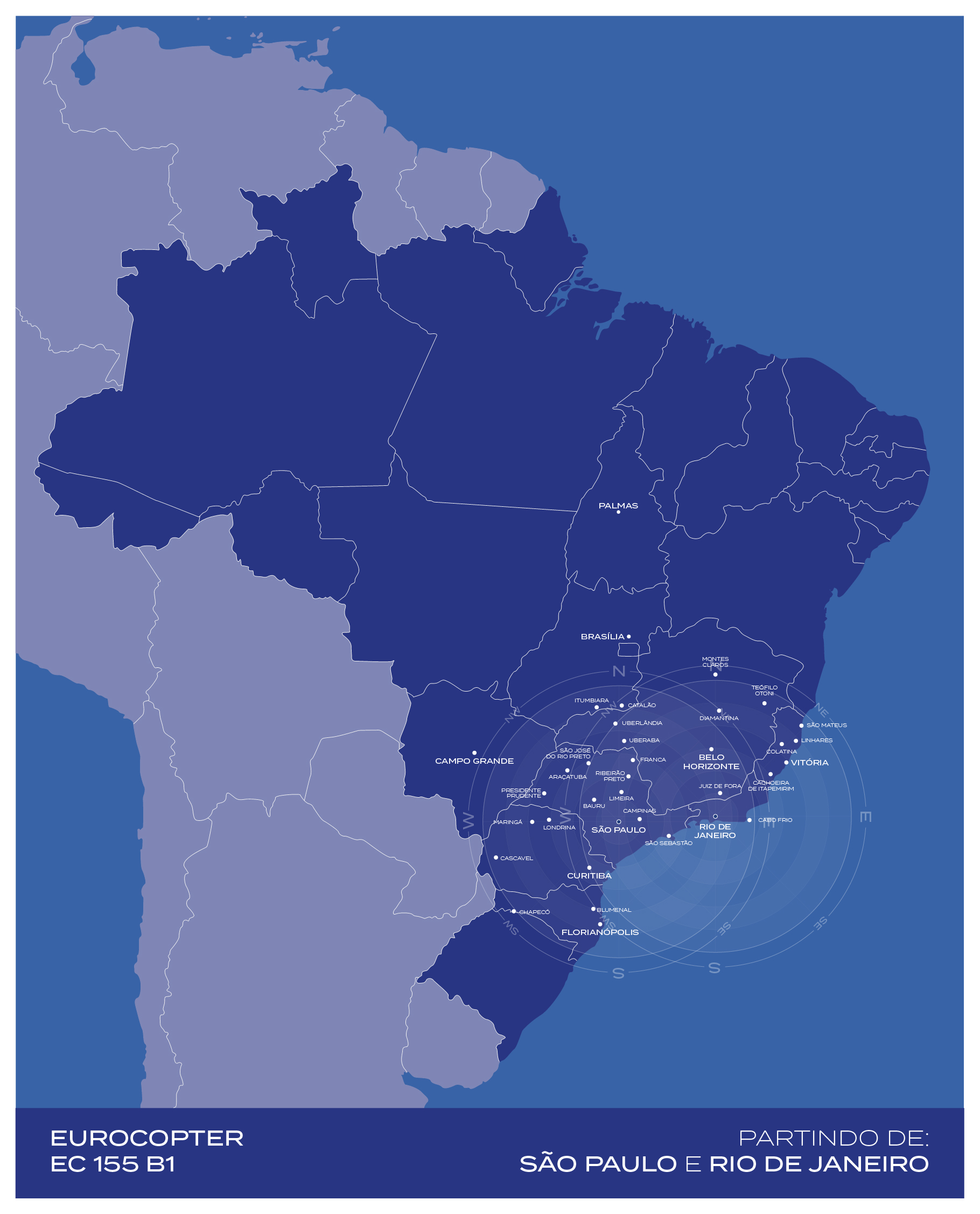 Bimotor com amplo espaço interno, o Eurocopter EC 155 B1 tem capacidade para dois pilotos e oito passageiros. Combina longo alcance, interior silencioso e tecnologia de ponta, atendendo tanto a viagens executivas quanto a momentos de lazer em família.